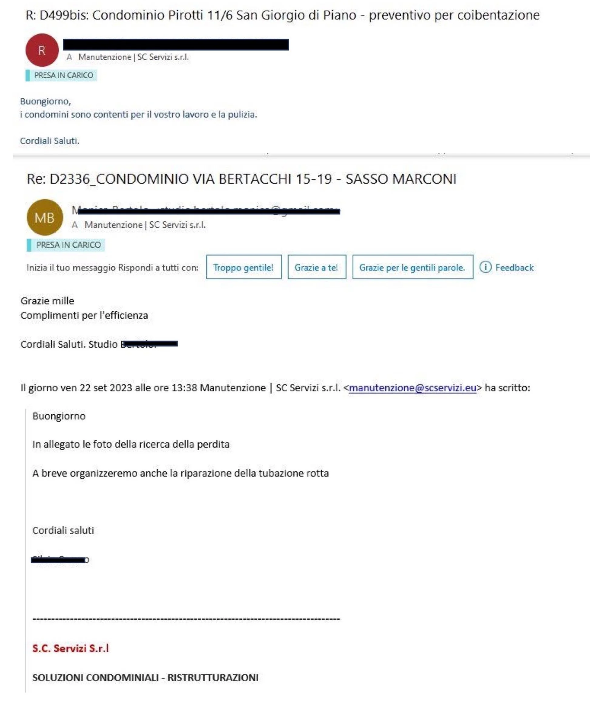 Il nostro operato è sempre corredato da documentazione fotografica, da relazioni dettagliate e da preventivi specifici (dove necessario)